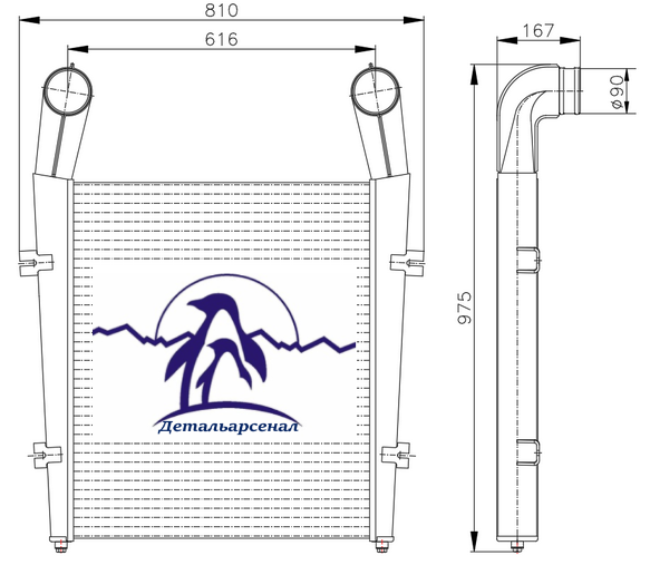 ОНВ 5432А5-1323010. Охладитель наддувочного воздуха для автомобиля МАЗ .