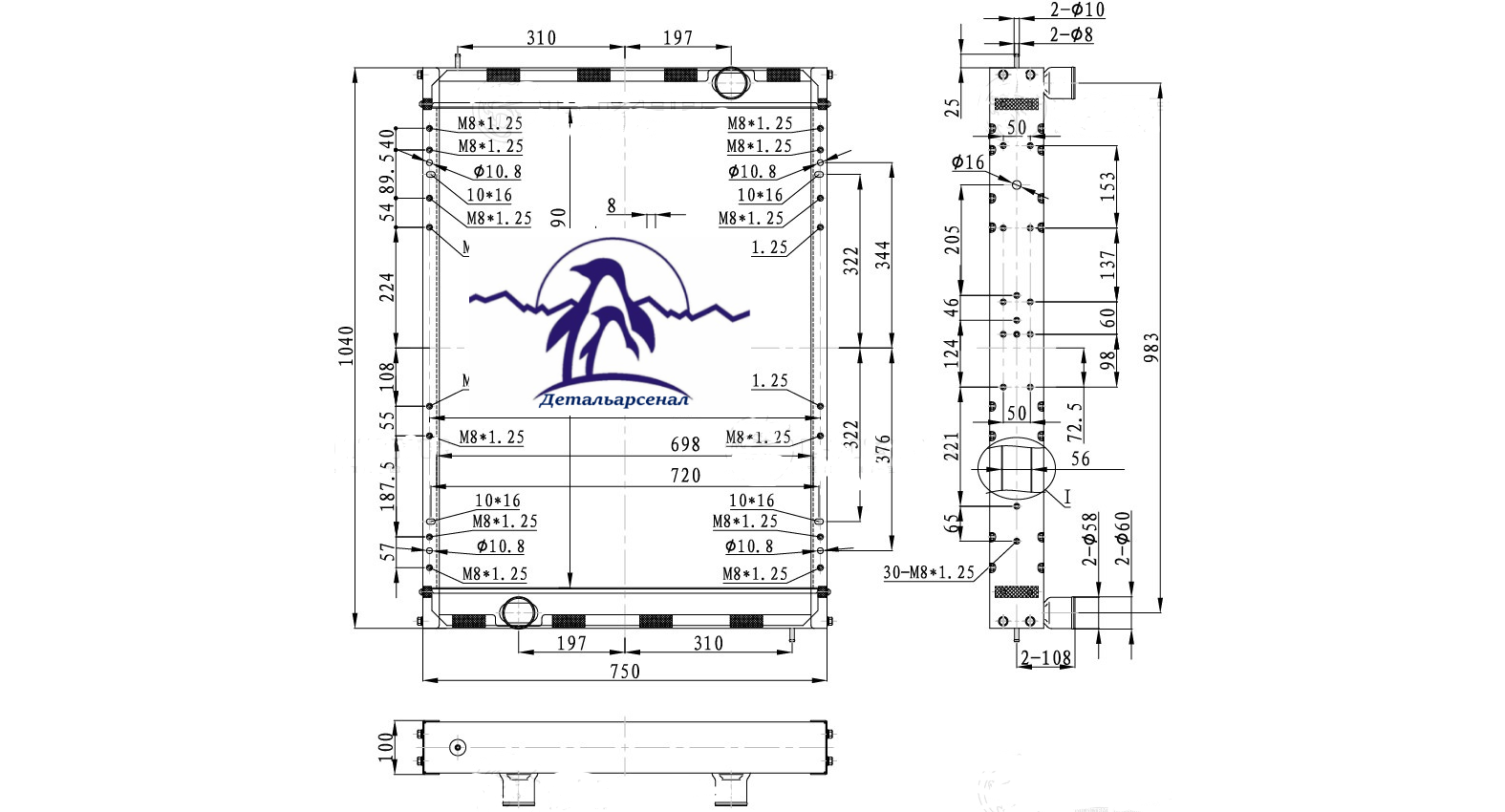 Радиатор охлаждения двигателя 107-1301010, алюминиевый с двигателем ОМ906LA, Лузар